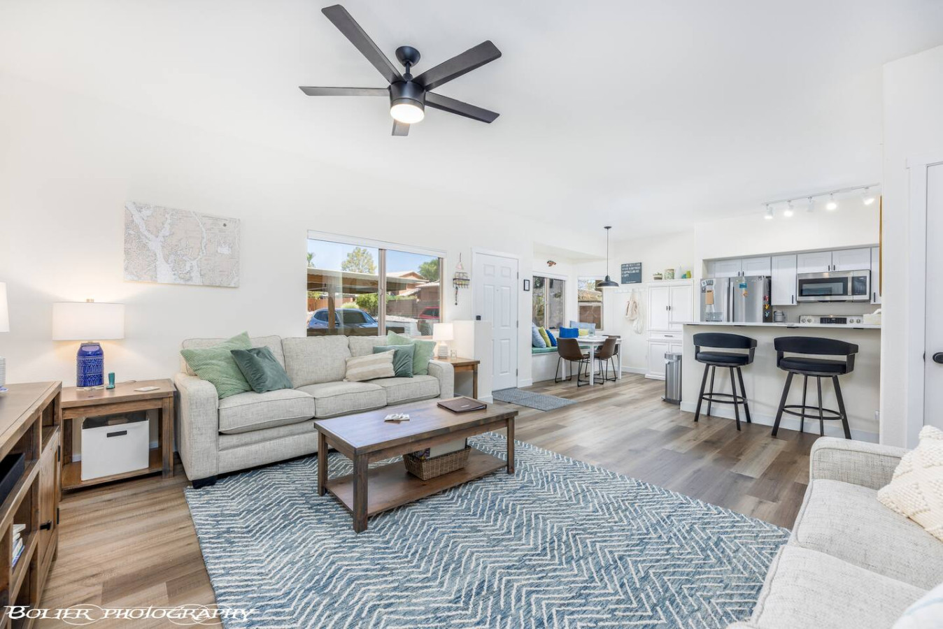 A break-away for six, come unwind and rejuvenate in our spacious retreat. Find refreshment in the lush pool following a morning of bike riding on the Virgin River bike path, a desert UTV adventure, or a round of world class golf. An airy kitchen awa...