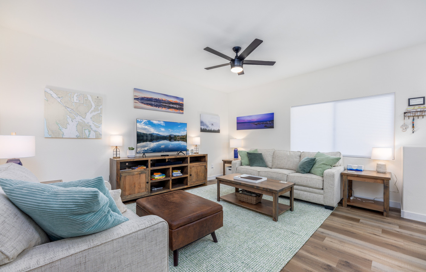 +1 (509) 881-7250Experience the perfect balance of comfort and style in this spacious 2-bed, 2-bath condo. Featuring a fully equipped kitchen, chic decor, and inviting bedrooms, it provides an ideal home base for your getaway. After a day of adventure, unwind by the pool and hot tub, take in the sunset, or enjoy a night in with games and your favorite show. Conveniently located for both relaxation and adventure, this condo offers everything you need for an unforgettable stay. Book now for a memorable experience! *Base fee is for 4 guests. $15 per guest per night over four guests and up to the maximum occupancy of six guests. YOUR INDOOR SPACE: Experience comfort and style in this charming 2-bedroom, 2-bathroom ground-floor condo, designed to make your stay in Mesquite truly memorable. Perfect for groups or families, this condo comfortably accommodates up to six guests, featuring four separate beds which sleep four adults sleep separately. The primary suite offers a peaceful retreat, complete with a king-sized bed, spacious closet, and private ensuite bathroom. The guest room is equally inviting, featuring a queen bed alongside a bunk bed with two twin-sized beds. For entertainment, the guest room is equipped with a Roku TV, ideal for winding down with a movie after a day of adventure. All bedding and pillows are encased in protective covers to ensure your peace of mind, knowing that the mattresses and pillows are free from unwanted elements. For families traveling with little ones, a Pack 'n Play, high chair, and other infant essentials are available for your convenience. The condo also includes a full-sized washer and dryer with provided laundry supplies, making it easy to refresh your clothing during your stay. The spacious, airy living room is the perfect place to relax in the evenings. With a smart TV, board games, and a collection of books, there is plenty to keep you entertained. Please note that the TVs have streaming capabilities along with local cable access. The open-concept design allows for seamless interaction between the kitchen, dining area, and living room, ensuring everyone can enjoy the space together. The fully stocked kitchen is a home cook's dream, equipped with everything needed to prepare meals, including pots, pans, baking sheets, a slow cooker, blender, toaster, and both a drip coffee maker and Keurig machine. Basic condiments and spices are also provided to make meal preparation easier and more convenient, so you can focus on enjoying your trip. COMMUNITY SPACE: The community offers a variety of amenities to enhance your stay, including a pool and a year-round heated hot tub. While the pool isn’t heated during the colder months, the hot tub remains inviting throughout the year. The community REC center serves as an additional gathering spot, featuring a full kitchen and dining area. There is also a fitness center with limited cardio equipment and resistance training. Enjoy a meal or a snack at the community grill and eating area, where you can also take in stunning sunset views. For a leisurely stroll or a place for the kids to play. Simply follow the paved sidewalks on either side of the property to reach Marilyn Redd Park, located just a short walk away. PARKING: You will have one designated covered parking space for your convenience. Additionally, there are plenty of available uncovered parking spots just outside the condo door, as well as RV parking for your trailers and recreational vehicles. Guests will have full access to the entire condo, with the exception of a locked owner’s closet. You’ll also be able to enjoy the community pool, hot tub, and REC center during your stay. An assigned covered parking spot is provided, and additional uncovered parking spaces are available for your convenience. Your co-hosts, J and Amy, are available when needed and live a short 5-10 minutes from the condo. They will be happy to help you when needed. No Smoking & No Pets: Our property is strictly non-smoking and pet-free. A $300 fine will be charged if evidence of smoking or pets is found. Quiet Hours: To ensure a peaceful environment for all guests, quiet hours are from 10:00 PM to 6:00 AM. Please be considerate of the neighbors. Shoe Policy: To maintain a clean and well-kept home, we kindly ask guests to remove their shoes upon entering. We strive to provide the best possible environment for a comfortable stay. Extended Stays: For stays over two weeks, additional cleaning fees may apply. Please inquire for more details. Key Fob for Amenities: Access to the pool, hot tub, and REC center requires a key fob. If the fob is lost, a $200 replacement fee will be charged. Safety Measures have been taken for your safety including: fire extinguisher and first aid kit along with smoke detectors throughout the home. We do not utilize natural gas inside the home.