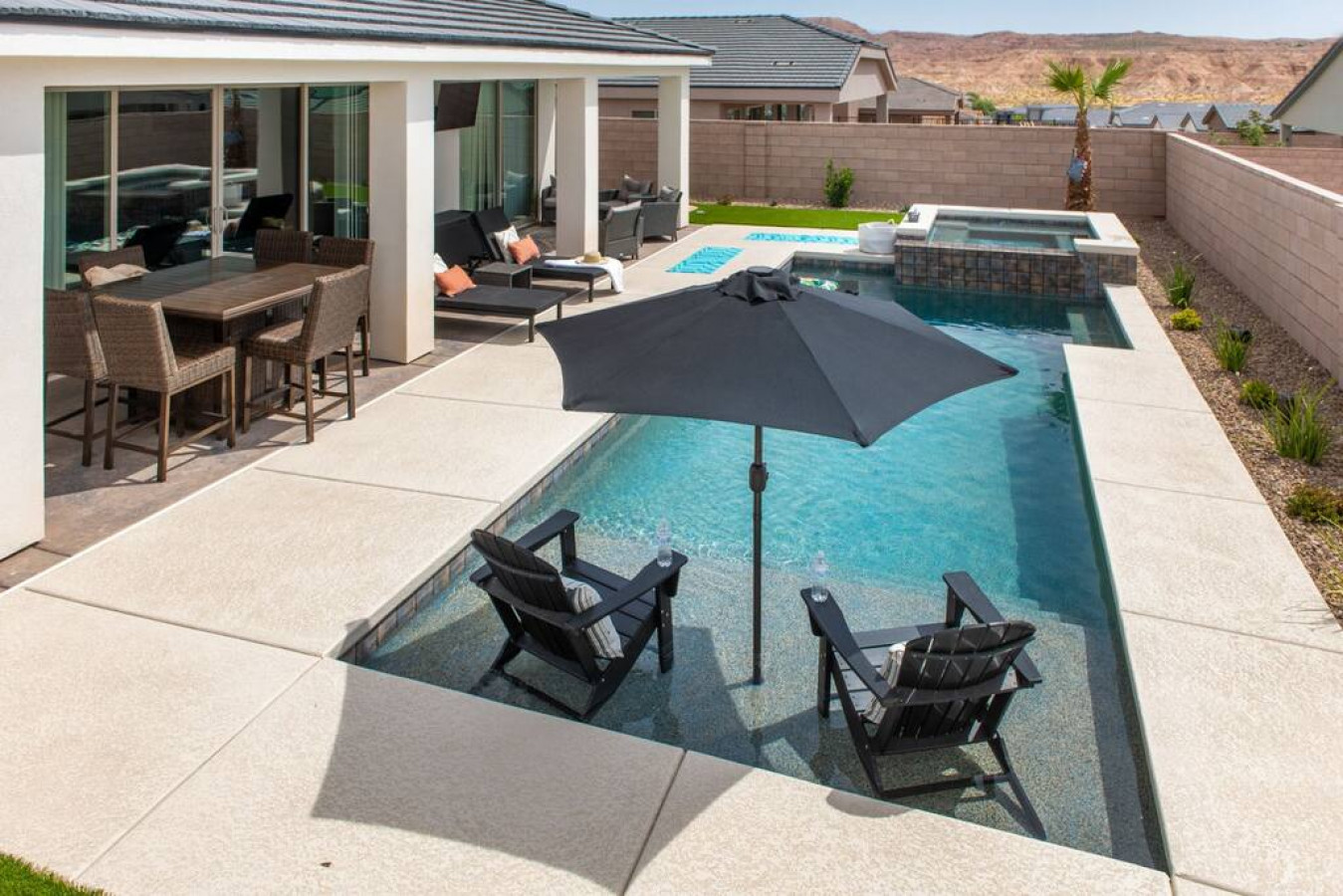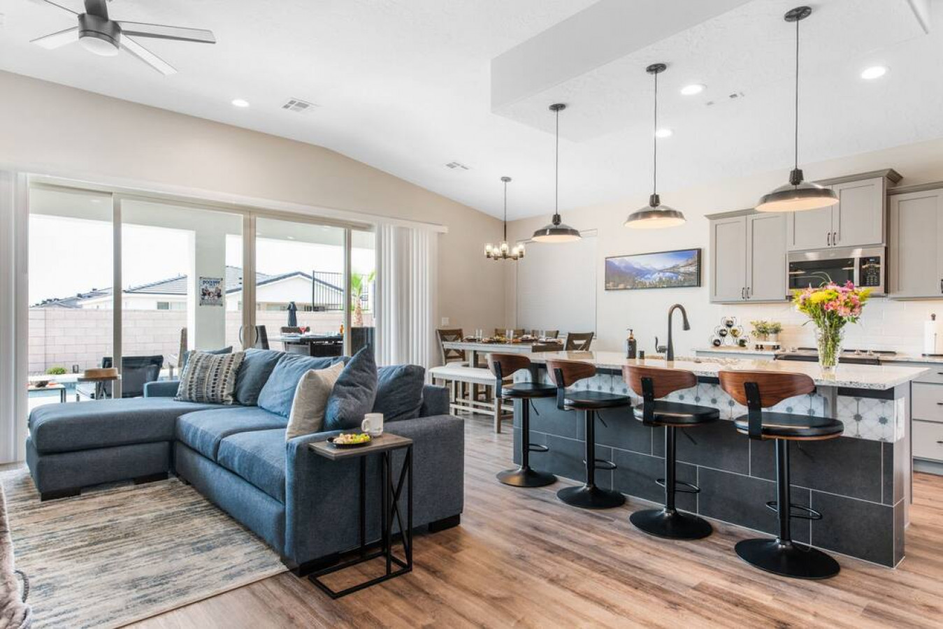 A break-away for six, come unwind and rejuvenate in our spacious retreat. Find refreshment in the lush pool following a morning of bike riding on the Virgin River bike path, a desert UTV adventure, or a round of world class golf. An airy kitchen awa...