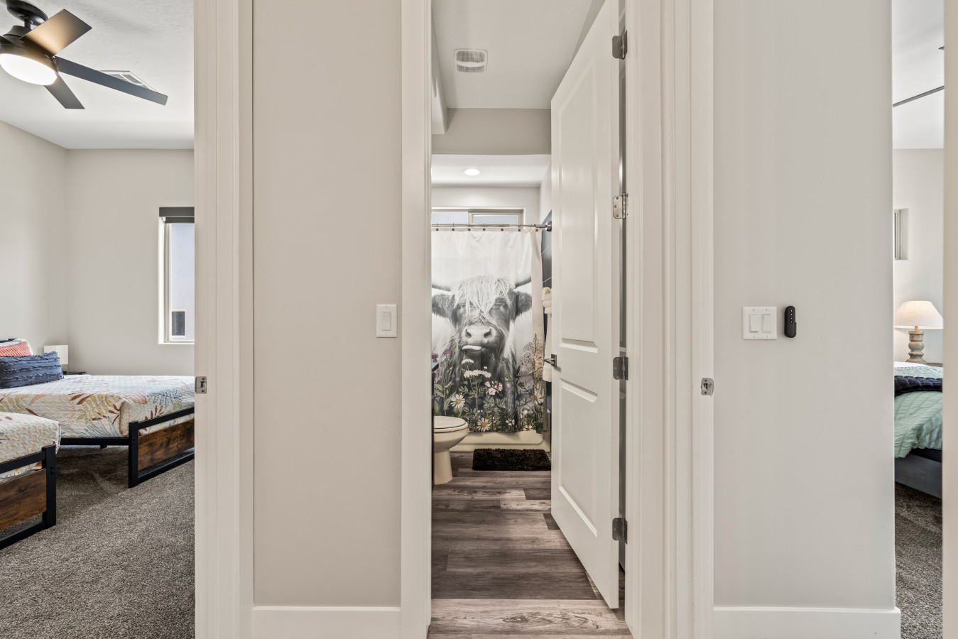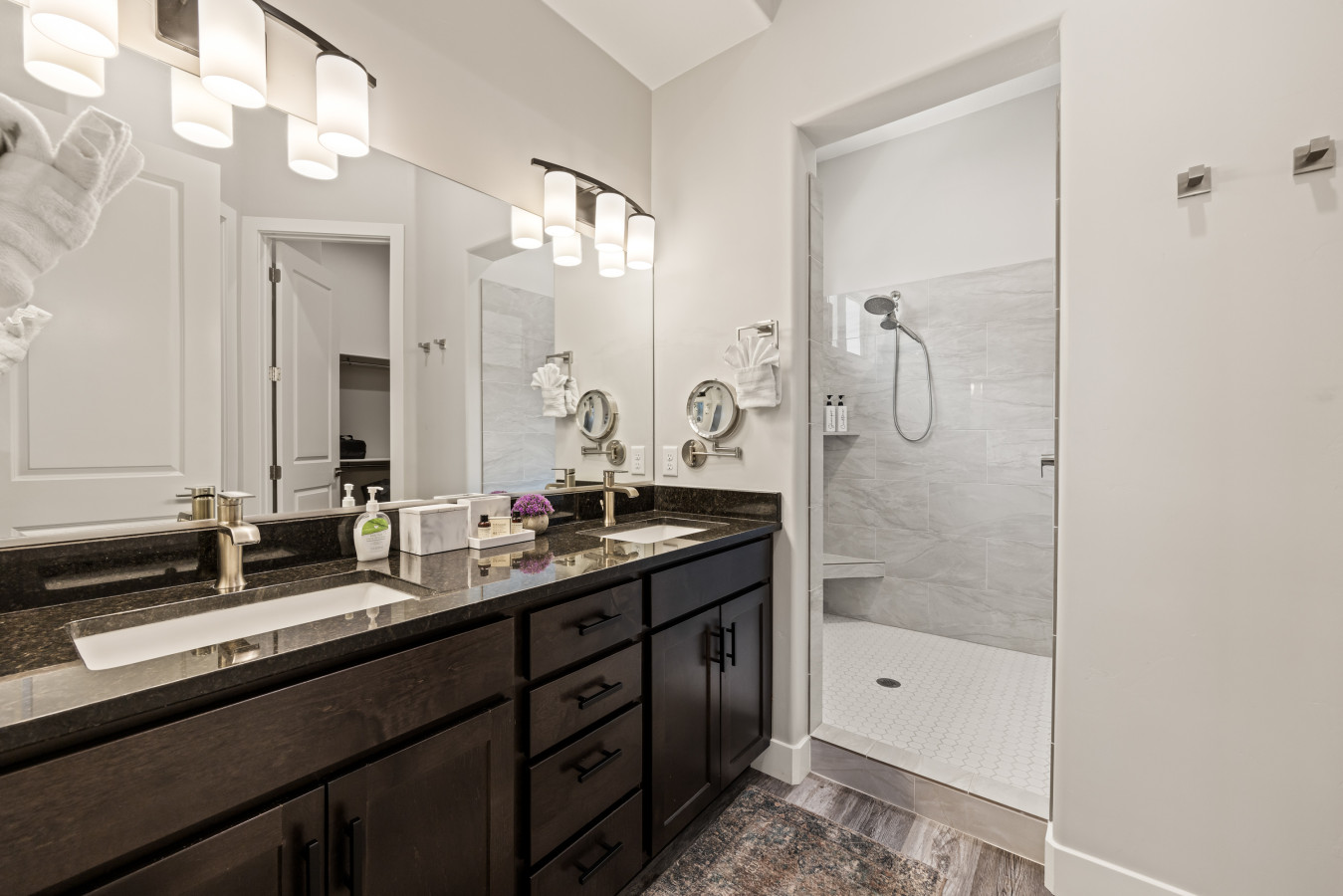 Bathrooms: Our two bathrooms, one attached to the primary bedroom, are fully stocked with luxury towels, shampoo, conditioner, body wash, lotion, and more, keeping your packing to a minimum.