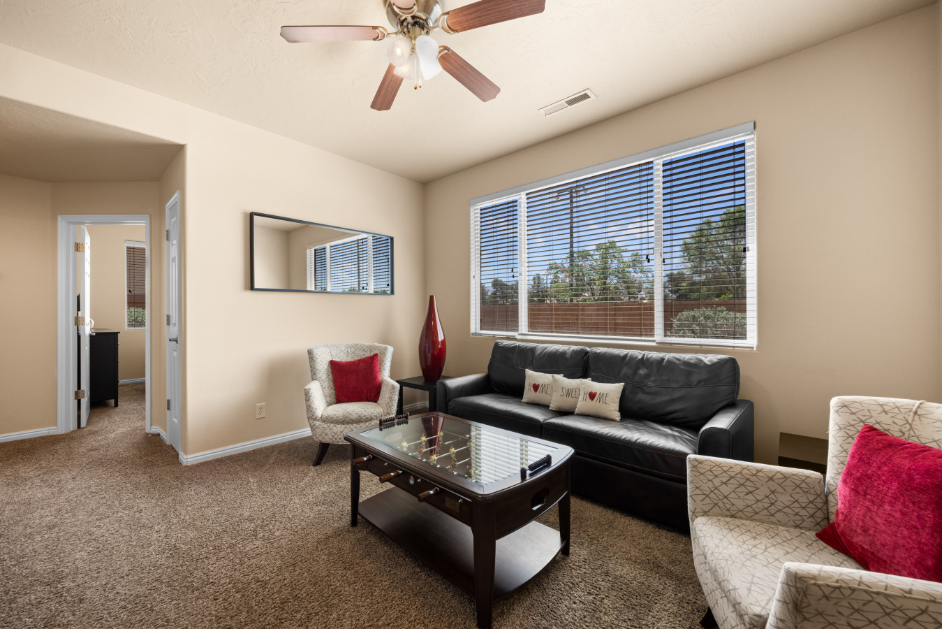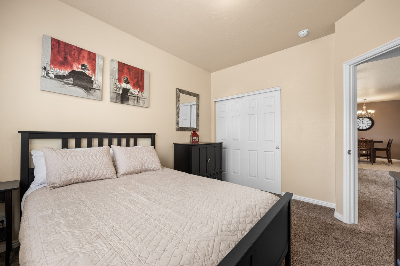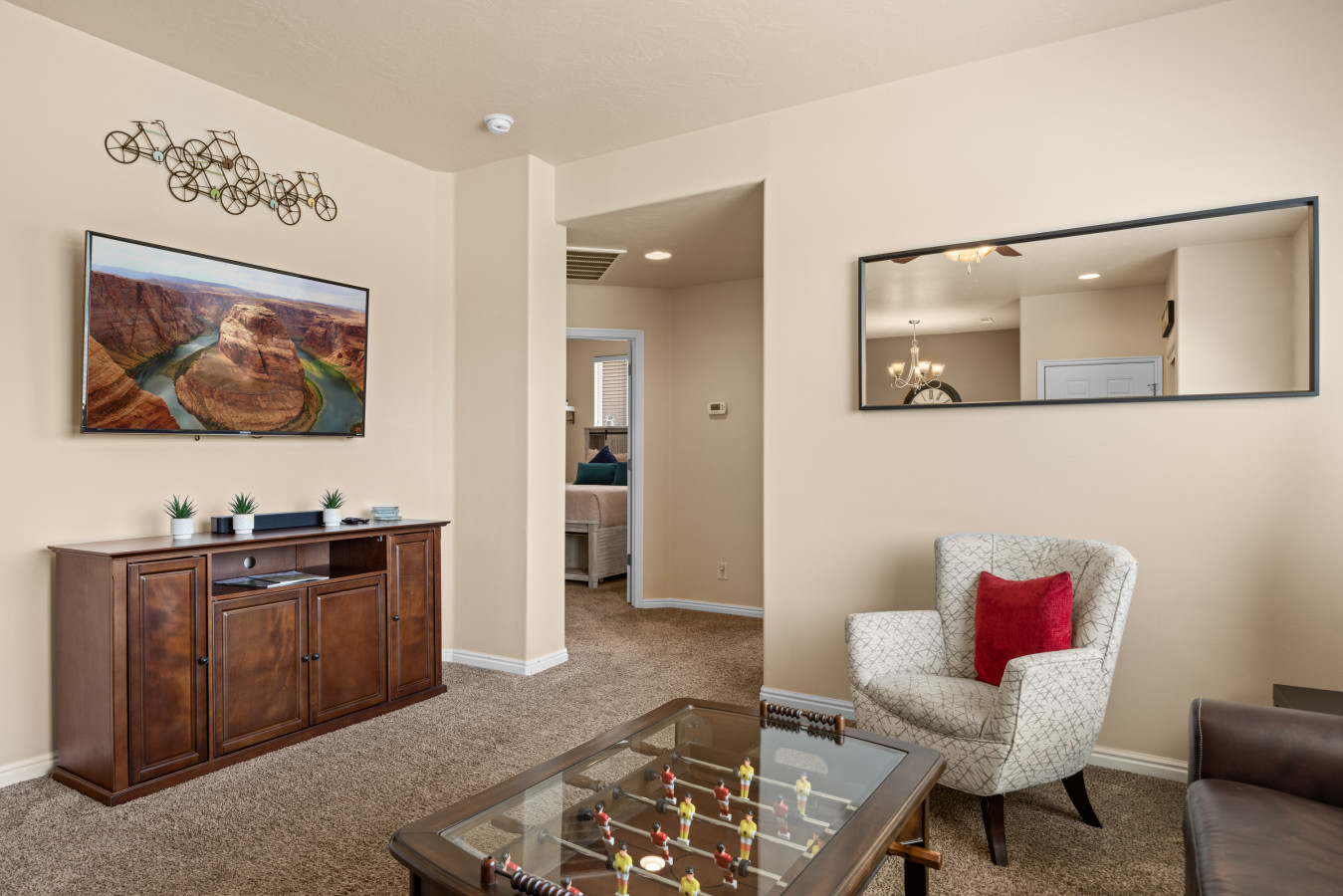 +1 (509) 881-7250This 2-bed, 2-bath, ground floor condo in the Nevada desert offers comfort and convenience. With a spacious garage and community trailer parking, it's perfect for outdoor adventures. Explore world-class golf, UTV trails, hiking, and nearby casinos. The quiet, safe neighborhood provides a peaceful retreat. We are committed to making your stay great, ensuring this condo is the perfect home base for your desert getaway. * Base fee is for 6 guests. YOUR INDOOR SPACE: Experience comfort and style in this charming 2-bedroom, 2-bathroom condo, designed to make your stay in Mesquite truly memorable. Perfect for groups or families, this condo comfortably accommodates up to six guests, featuring 2 queen beds and a queen sofa sleeper in the living room. The primary suite provides a serene escape, featuring a queen-sized bed, a spacious closet, and a private ensuite bathroom. The guest room is just as welcoming, offering a queen bed and cozy linens. For entertainment, the guest room is equipped with a smart TV—perfect for relaxing with a movie after a day full of adventure. To ensure your peace of mind, all bedding and pillows are encased in protective covers, keeping mattresses and pillows free from any unwanted elements. For families traveling with young children, we also provide other essential baby items for your convenience. The condo also includes a full-sized washer and dryer with provided laundry supplies, making it easy to refresh your clothing during your stay. The spacious, airy living room is the perfect place to relax in the evenings. With a smart TV and foosball table, there is plenty to keep you entertained. Please note that the TVs have streaming capabilities along with local cable access. The open-concept design allows for seamless interaction between the kitchen, dining area, and living room, ensuring everyone can enjoy the space together. The fully stocked kitchen is a home cook's dream, equipped with everything needed to prepare meals, including condiments and spices are also provided to make meal preparation easier and more convenient, so you can focus on enjoying your trip. COMMUNITY SPACE: The community offers a variety of amenities to enhance your stay, including a pool and a year-round heated hot tub. While the pool isn’t heated during the colder months, the hot tub remains inviting throughout the year. The community REC center serves as an additional gathering spot, featuring a full kitchen and dining area. There is also a fitness center with limited cardio equipment and resistance training. Enjoy a meal at the community grill and eat on the covered picnic tables. Right across the street is a great playground for the kids. Take a stroll along the Virgin River entering at Hafen Park just a few blocks away. Just under a miles away is the Casablanca Resort and Casino. PARKING: You will have plenty of space to park your vehicles. There is one spot in the garage, spots in the driveway, and plenty of available parking spots across the street, as well as RV parking for your trailers and recreational vehicles. Guests will have full access to the entire condo with the exception of a locked owner’s closet. You will also be able to enjoy the community pool, hot tub, and REC center during your stay. Your co-hosts, J and Amy, are available when needed and live a short 5-10 minutes from the condo. They will be happy to help you when needed. No Smoking & No Pets: Our property is strictly non-smoking and pet-free. A $300 fine will be charged if evidence of smoking or pets is found. Quiet Hours: To ensure a peaceful environment for all guests, quiet hours are from 10:00 PM to 8:00 AM. Please be considerate of the neighbors. Shoe Policy: To maintain a clean and well-kept home, we kindly ask guests to remove their shoes upon entering. We strive to provide the best possible environment for a comfortable stay. Extended Stays: For stays over two weeks, additional cleaning fees may apply. Please inquire for more details. Key Fob for Amenities: Access to the pool, hot tub, and REC center requires a key fob. If the fob is lost, a $200 replacement fee will be charged. Safety Measures have been taken for your safety including: fire extinguisher and first aid kit along with smoke detectors throughout the home. We do not utilize natural gas inside the home.