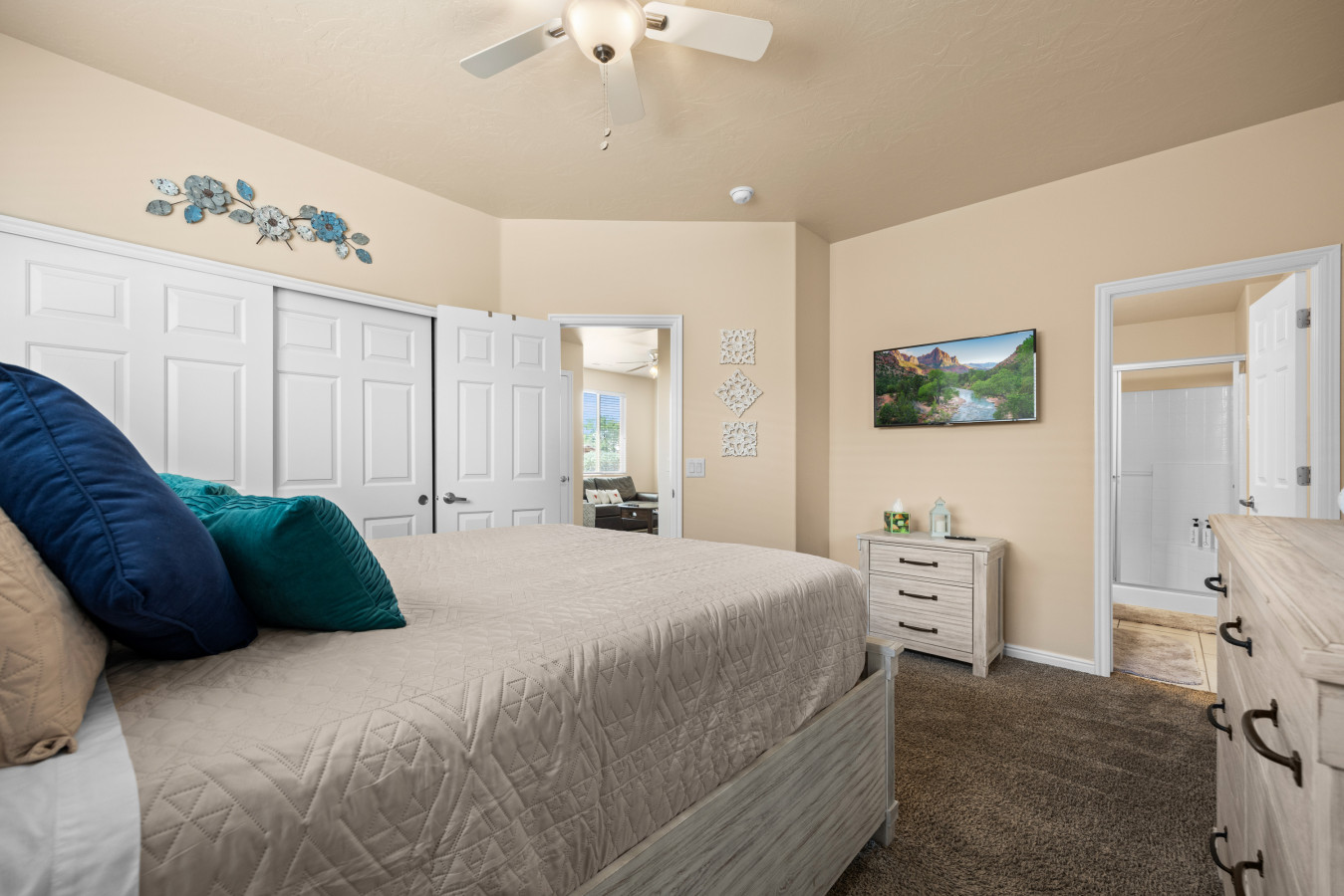 A break-away for six, come unwind and rejuvenate in our spacious retreat. Find refreshment in the lush pool following a morning of bike riding on the Virgin River bike path, a desert UTV adventure, or a round of world class golf. An airy kitchen awa...