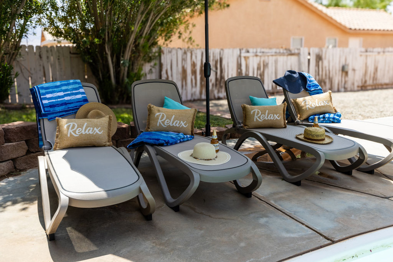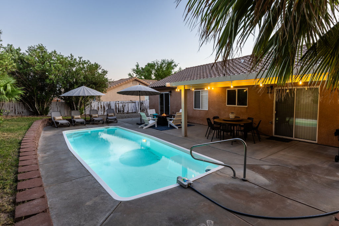 POOL: Bask in the sun and cool off year-round in the well-maintained outdoor pool, which can be heated upon request at no extra charge. This is your perfect retreat for relaxation and fun. With multiple sun loungers provided, this serene space offers ample room to unwind and soak up the rays. Whether you're taking a refreshing dip or lounging poolside, the inviting backyard area provides a tranquil setting for ultimate enjoyment. Please keep in mind that this is the desert, so debris may often be present. The water is treated weekly and remains very clean, but some debris may occur. A pole and net are available for your use.