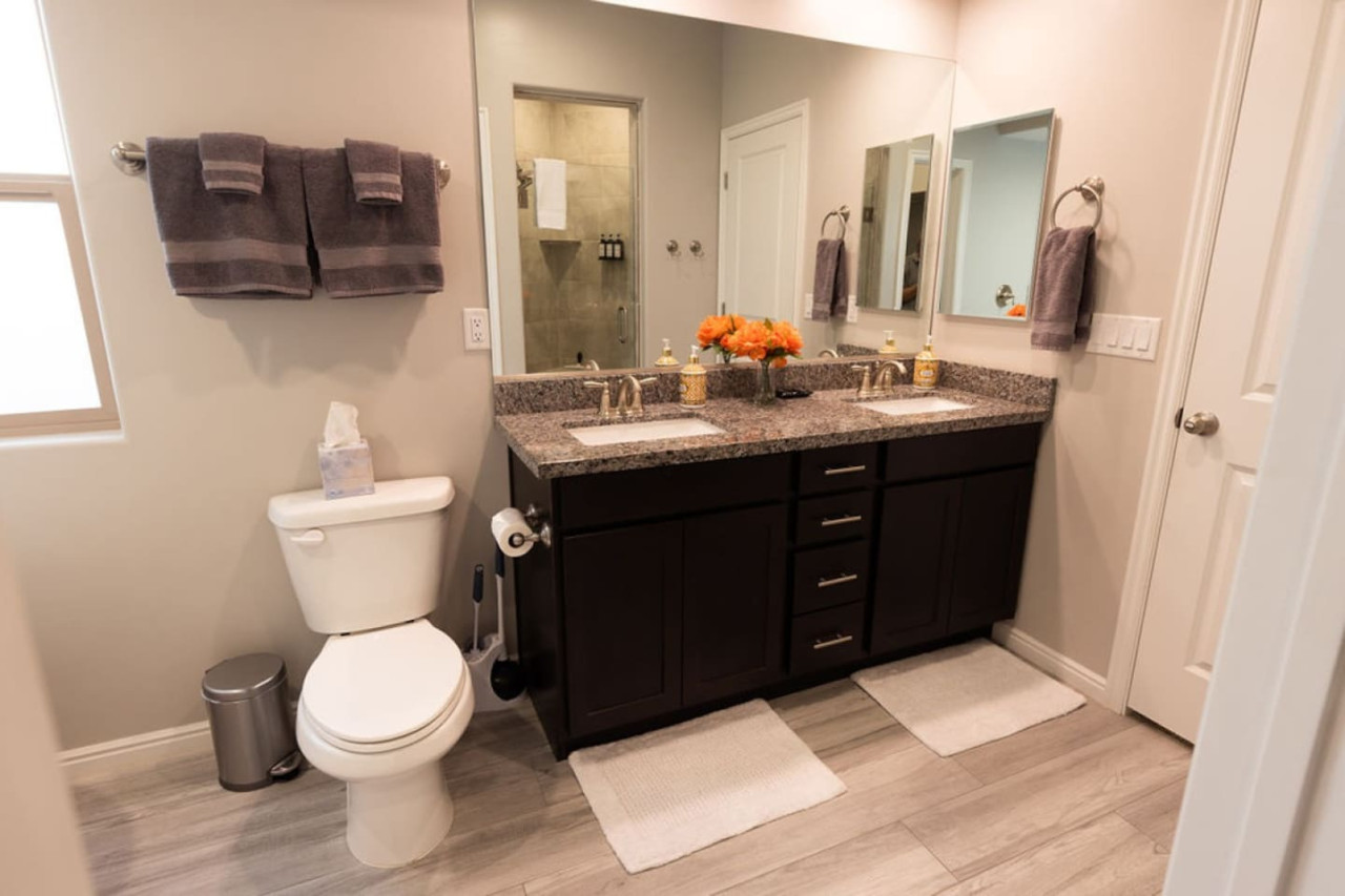 Bathrooms: Our two bathrooms, one attached to the primary bedroom, are fully stocked with luxury towels, shampoo, conditioner, body wash, lotion, and more, keeping your packing to a minimum.