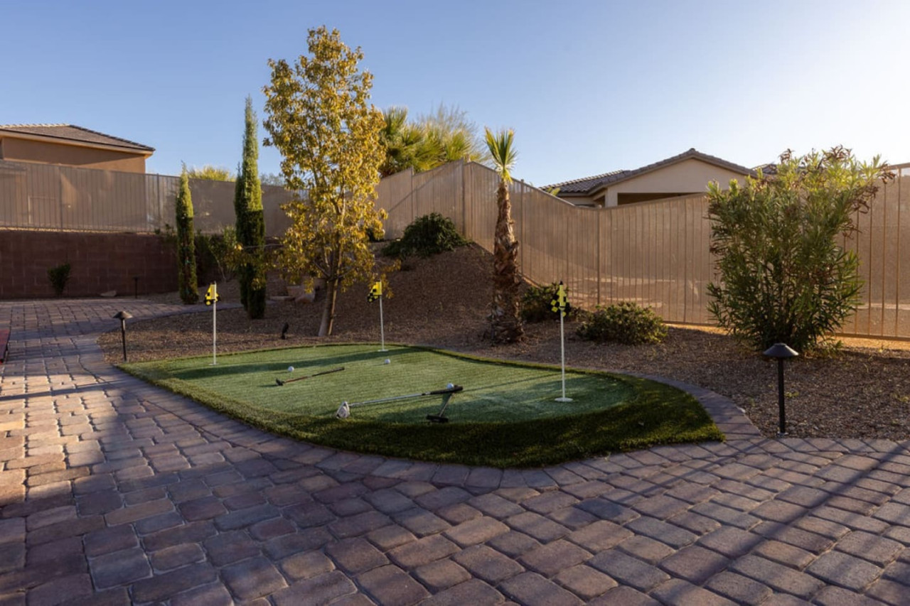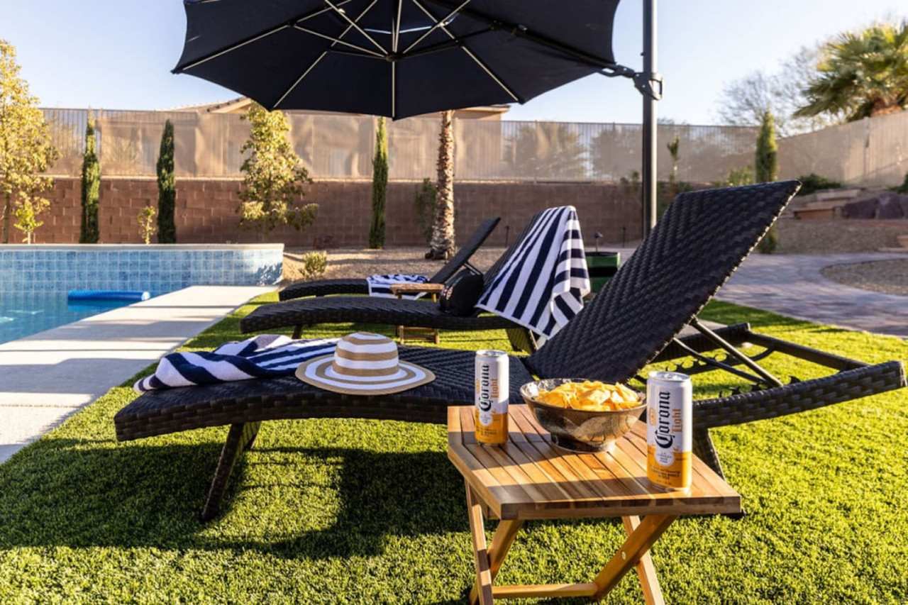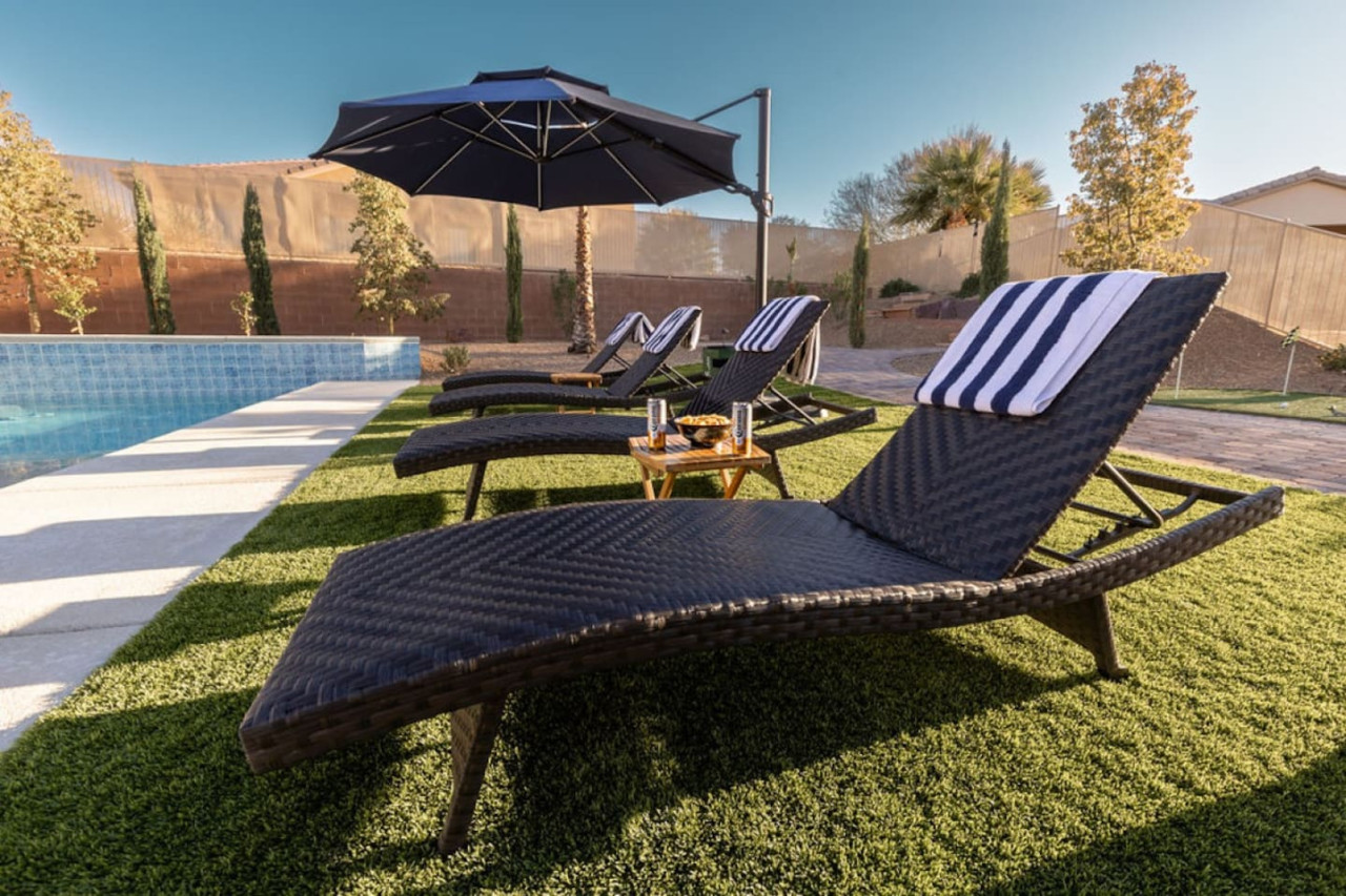 Lounging on the TURF GREEN: Relax in our 4 lounge chairs and soak up some sun or hide under the large umbrella for a bit of shade while reading your favorite book.