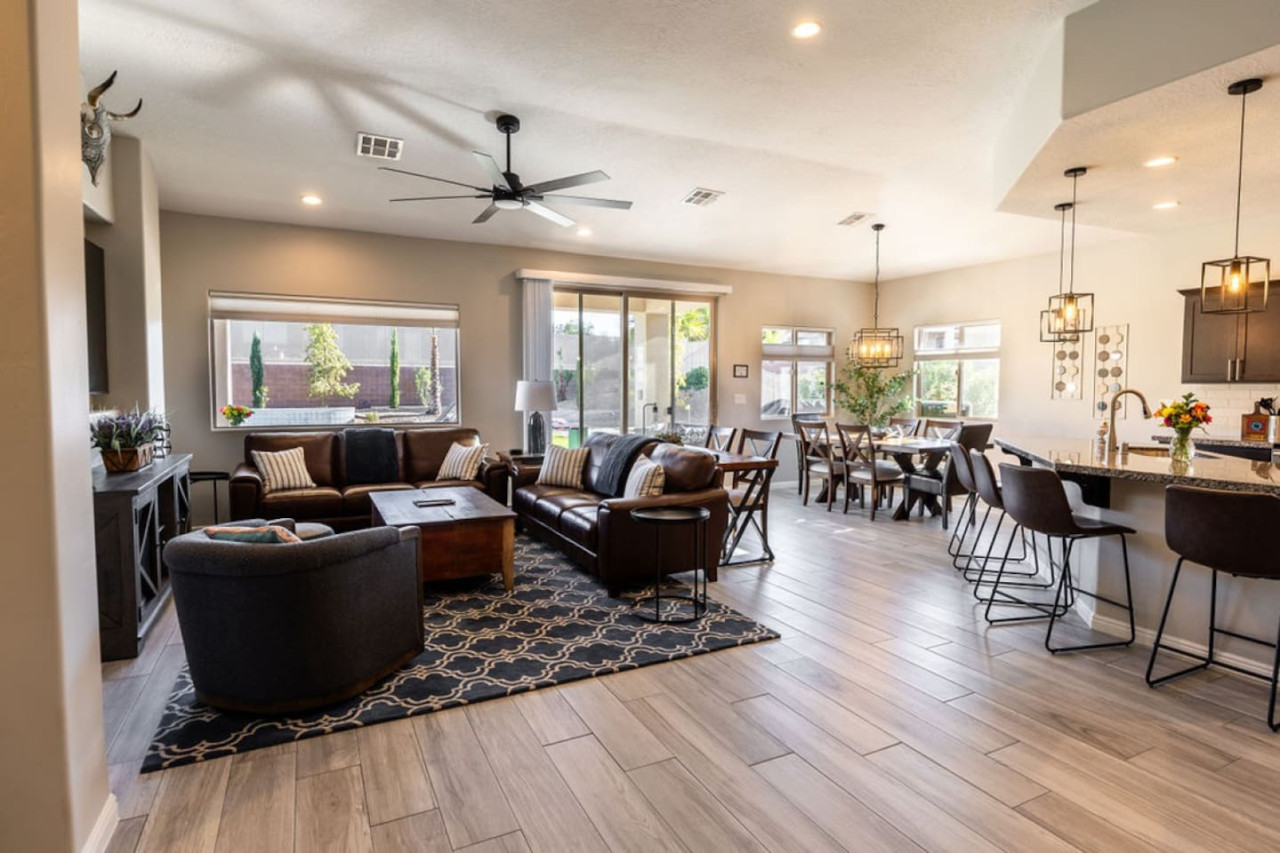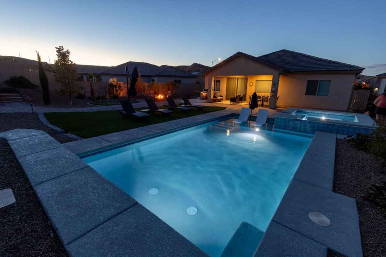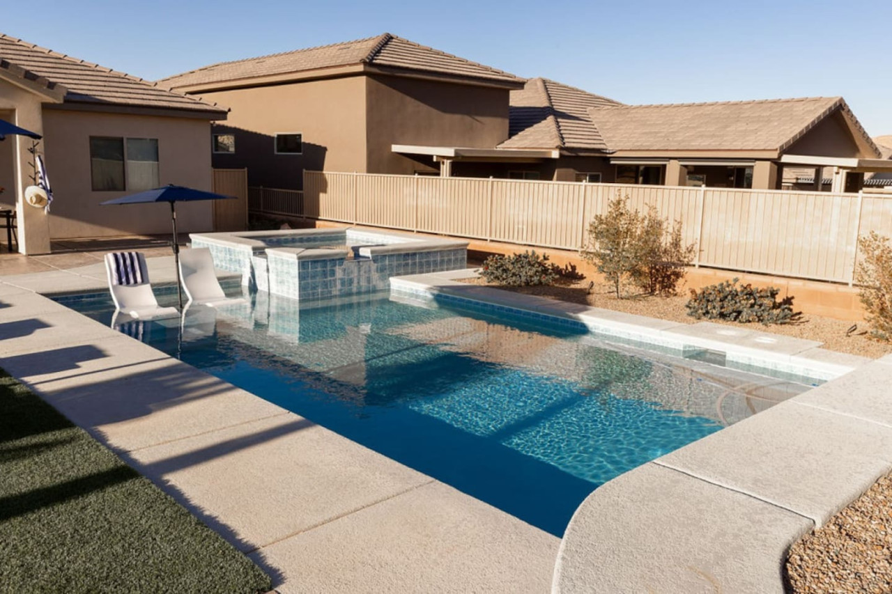A break-away for six, come unwind and rejuvenate in our spacious retreat. Find refreshment in the lush pool following a morning of bike riding on the Virgin River bike path, a desert UTV adventure, or a round of world class golf. An airy kitchen awa...