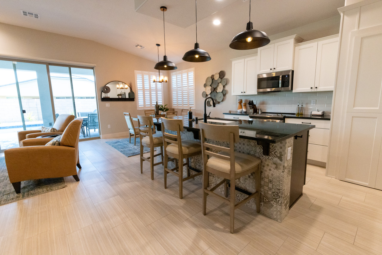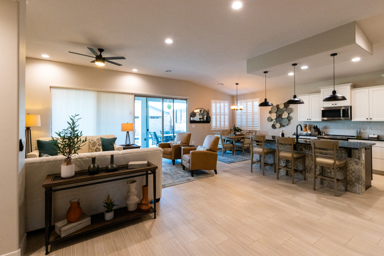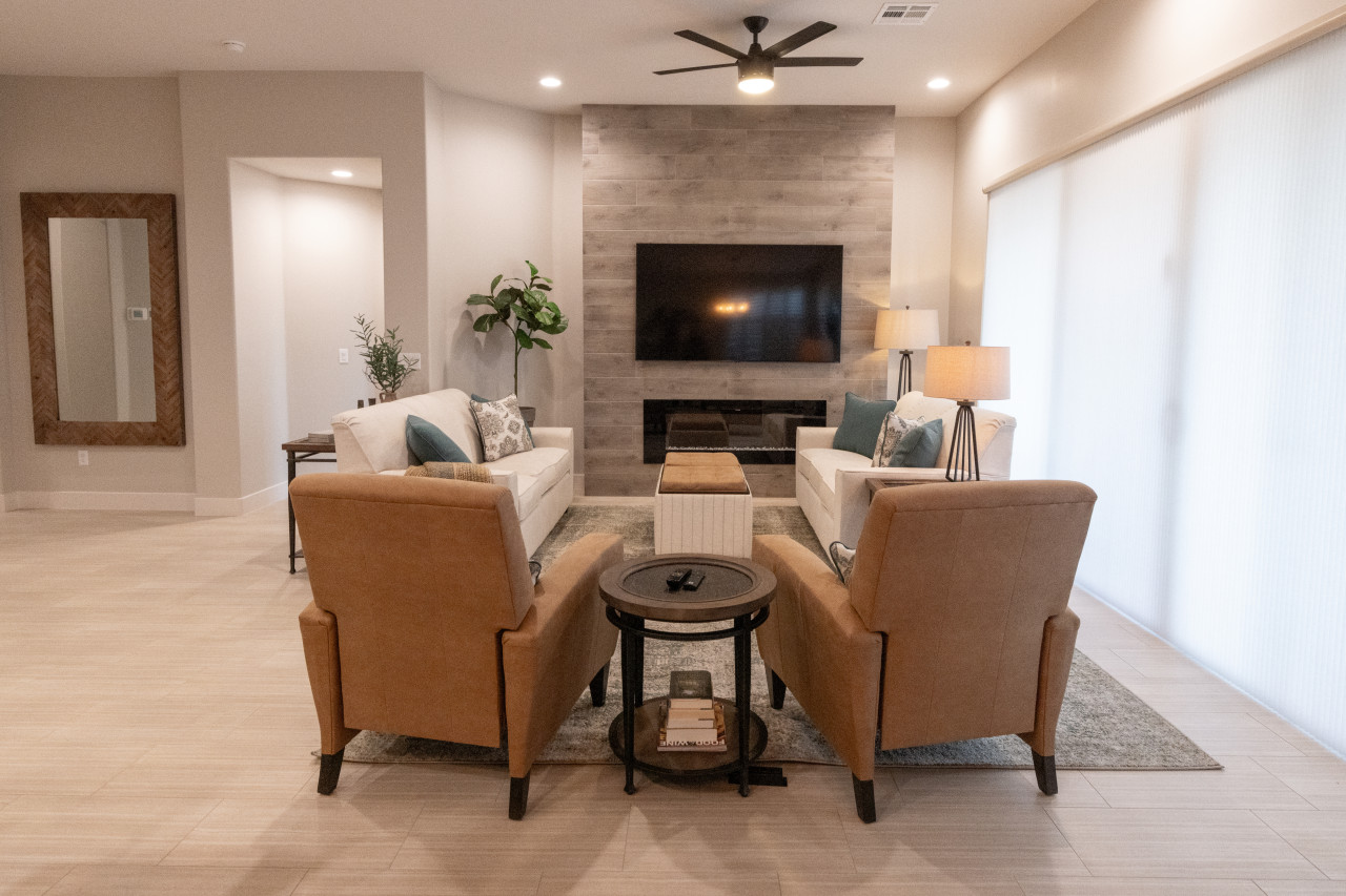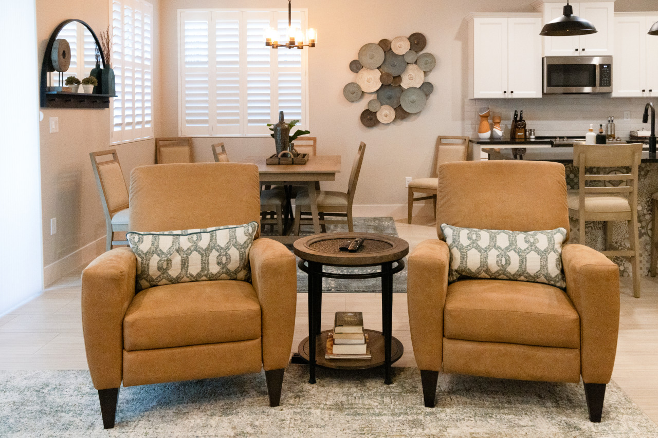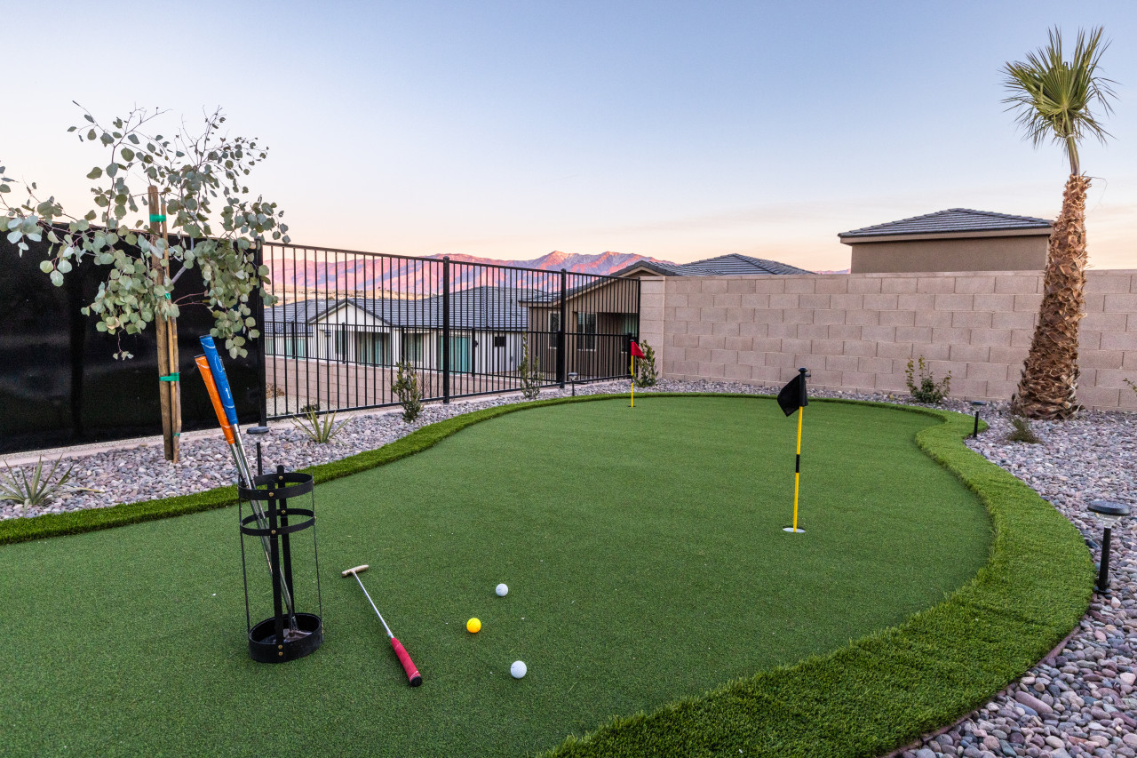 Lazy Boy Manor is located in a new and beautiful and community in Mesquite called Cambria. Located north and a bit outside the main part of town, the neighborhood is surrounded by beautiful desert landscape. The hills and bluffs provide views and a plethora of places to walk. Everywhere you turn, you will see the Virgin Mountains, rolling sand hills and stately bluffs of the valley. As this is a brand new community and some houses are still being built, guests will experience some construction for a time.