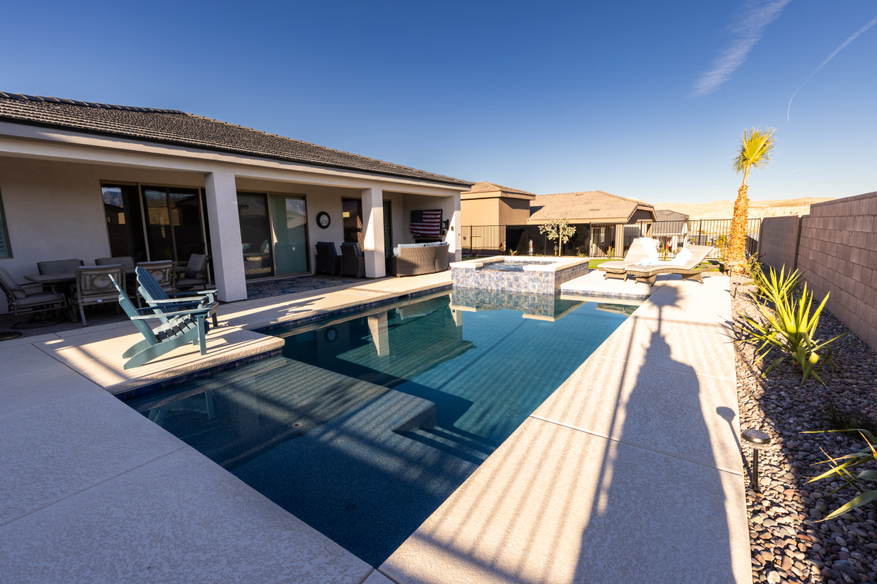 +1 (509) 881-7250Indulge yourself at Lazy Boy Manor, our 3bd/2bth haven boasting a pool, hot tub, and serene outdoor escape with fireplace, TV, and comfy furnishings. Immaculately maintained, it features a stocked kitchen, luxurious linens, and top-notch mattresses. Tasteful decor, upscale furnishings, and Smart TVs in each room elevate your stay. Vistas of the Virgin mountains and desert bluffs, envelope the space in a cozy, refined atmosphere. Lazy Boy Manor offers a fusion of comfort and sophistication.