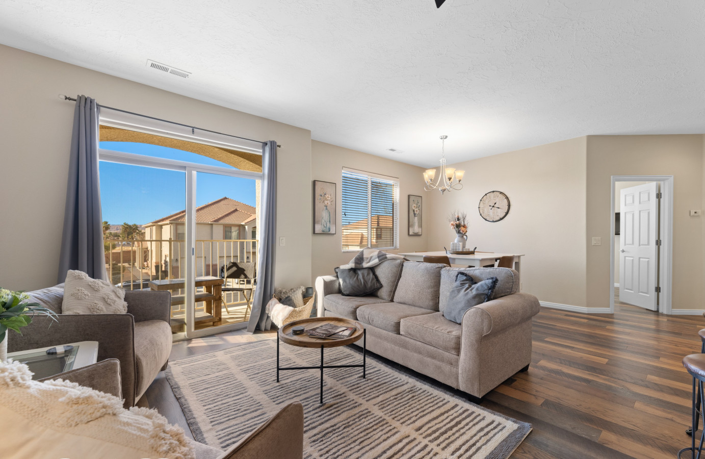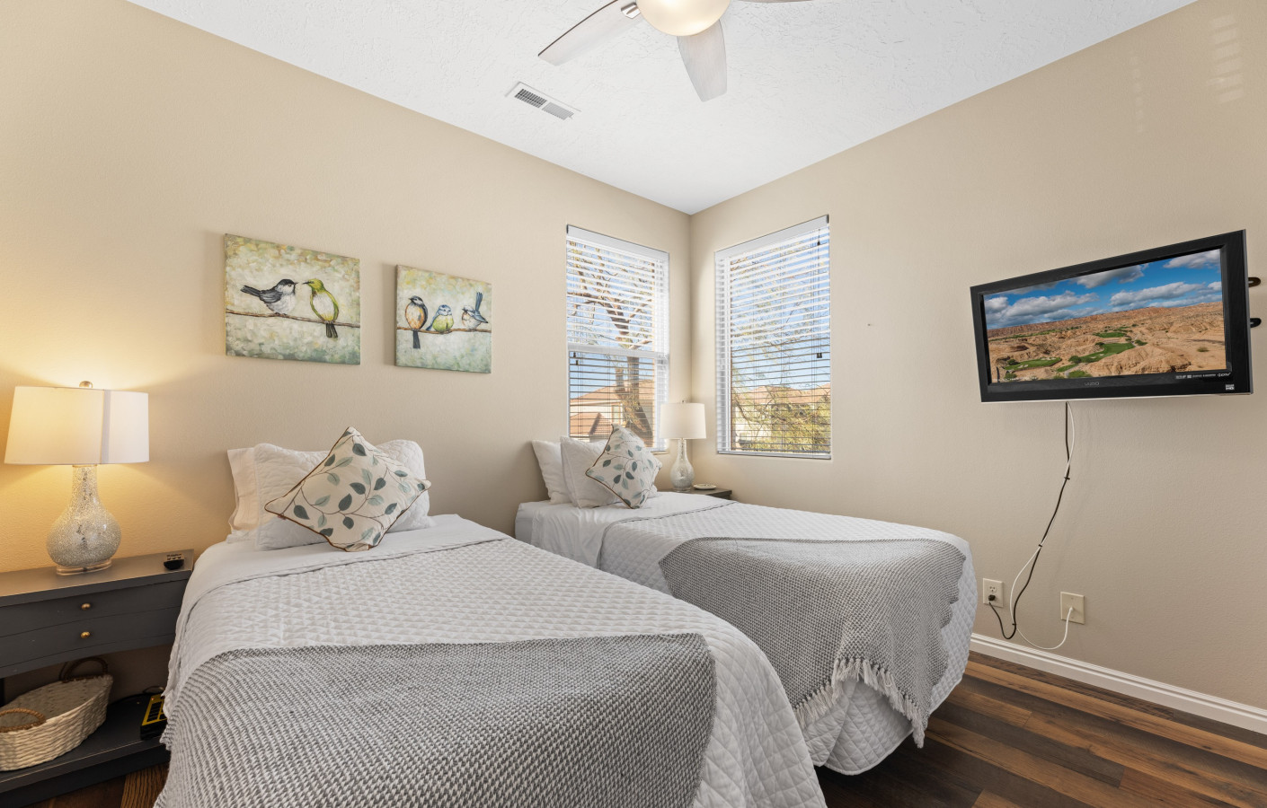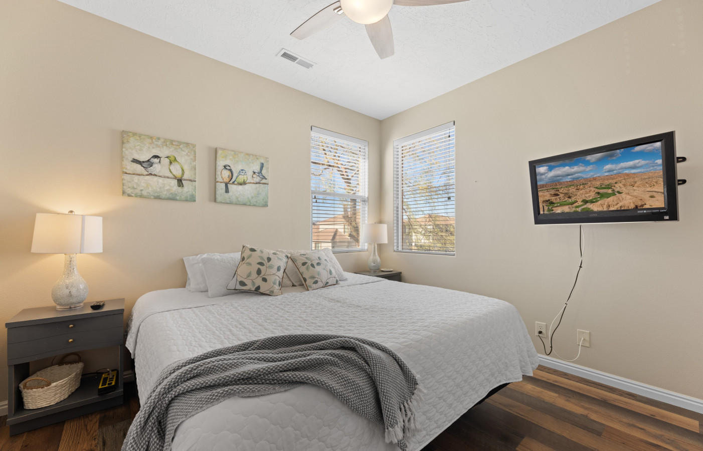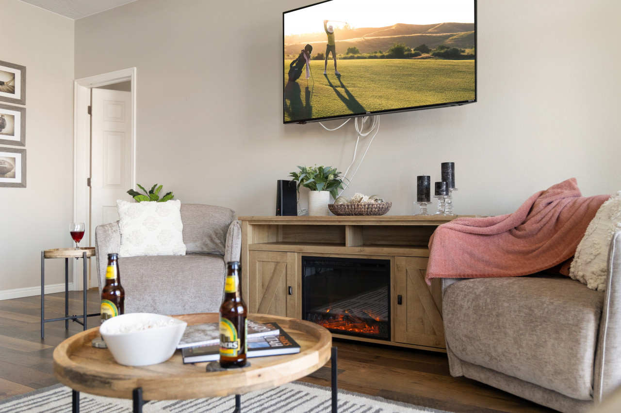 +1 (509) 881-7250A break-away for six, come unwind and rejuvenate in our spacious retreat. Find refreshment in the lush pool following a morning of bike riding on the Virgin River bike path, a desert UTV adventure, or a round of world class golf. An airy kitchen awaits your home-cooked explorations or contemporary selection of local eats. Sip on your drink of choice with a balcony view, and just after sunset, be soothed to peaceful sleep on crisp cotton sheets. Our haven awaits you; your home away from home. * For stays of 3 weeks or more, extra cleaning fees apply. Please inquire before reserving for this length of stay. * No Smoking - $300 fine if evidence is found (smoke/ashes/butts) * Please keep noise to a minimum in respect for our neighbors. Quiet hours are 10:00PM-6:00 AM. If management is called out for a complaint, there will be a fee of $100. *Our townhouse has a comfortable feel and is extremely clean. This 2 bedroom/2 bath condo will not disappoint. The primary bedroom with attached bath and walk-in closet provides a king sized bed. The guest bedroom offers EITHER a king or two twins. Just let us know your preference. The second bath is very close to the guest room but still accessible from the main living area. There are also two XL twin trifold mattresses that can be set up in any space. Being Airbnb travelers ourselves, we know the importance of providing an extremely well-kept and clean space for our guests. All bedding and pillows are covered with protective casings that help you know our mattresses and pillows are free of unwanted elements. Our housecleaning staff takes pride in making sure your stay is comfortable and without worry. New, comfortable beds, extra pillows, and blankets give guests the possibility of a great night's sleep. *Our fully equipped kitchen has everything you need including a full set of pots and pans, crock pot, baking sheets and pans, serving dishes, toaster, coffee maker, blender and more. Condiments include catsup, mustard, oil, vinegar, basic cooking spices, coffee, tea, and more. This limits shopping and keeps cooking costs down so that you can spend more in Mesquite having fun! *The deep, but narrow (be careful when entering) garage allows you to park inside, escaping the heat and occasional rain/wind storm. In the garage, you will find his and her hybrid bicycles for you to enjoy. A small compressor is provided for you to make sure your tires are ready for a comfortable ride. We have a beautiful community pool, hot tub, and rec area for your use. Pool toys, a small cooler, and 2 camp chairs are provided for daily outings. *Access to the garage and front door is gained by a personalized code for every guest. A garage door opener will be provided for you. We are confident that you will love this condo. *The entire condo, garage, and common areas of the community will be yours to enjoy. *We live in town and manage the condo ourselves. If you need us or have questions, we are just minutes away. *The Springs is a highly desired Mesquite vacation neighborhood amongst many local residents. It is quiet, friendly and folks look out for one another. Mesquite offers golf, Golf, GOLF....beautiful sunsets, hiking, miles of ATV/UTV trails, gambling, and sporting events. Centrally located, it is a 90 minute drive to the Vegas strip or Zion National Park. You can't be bored in Mesquite! This is a very friendly neighborhood, 1/2 mile from a great walking/biking trail and very close to fast-food eats and the Casablanca Resort and Golf Course. *Mesquite is walking and bicycle friendly, but getting to and from the store we suggest a car. *Quiet hours are between 10:00 pm and 7:00 am. * If the pool key/rec room key/garage opener is lost, there will be a $200 charge against the security deposit as this is what the HOA charges us for a replacement key. * This rental has a flight of stairs and is NOT wheelchair accessible. * We ask that the HOA guidelines be adhered to in order to be respectful of our neighbors. * Additional cleaning fee for stays over 2 weeks. Inquire with hosts about stays longer than 2 weeks for answers to your questions.
