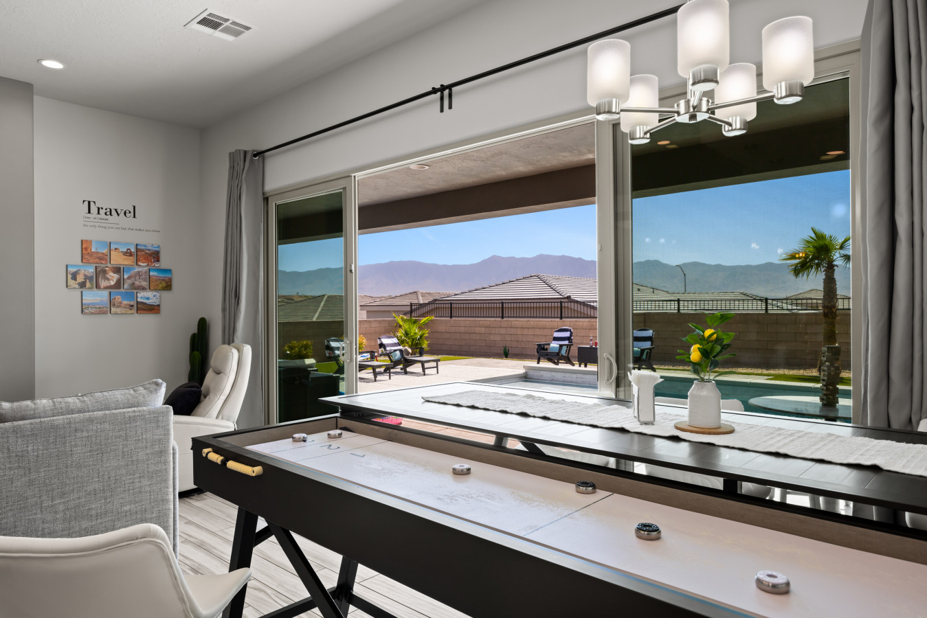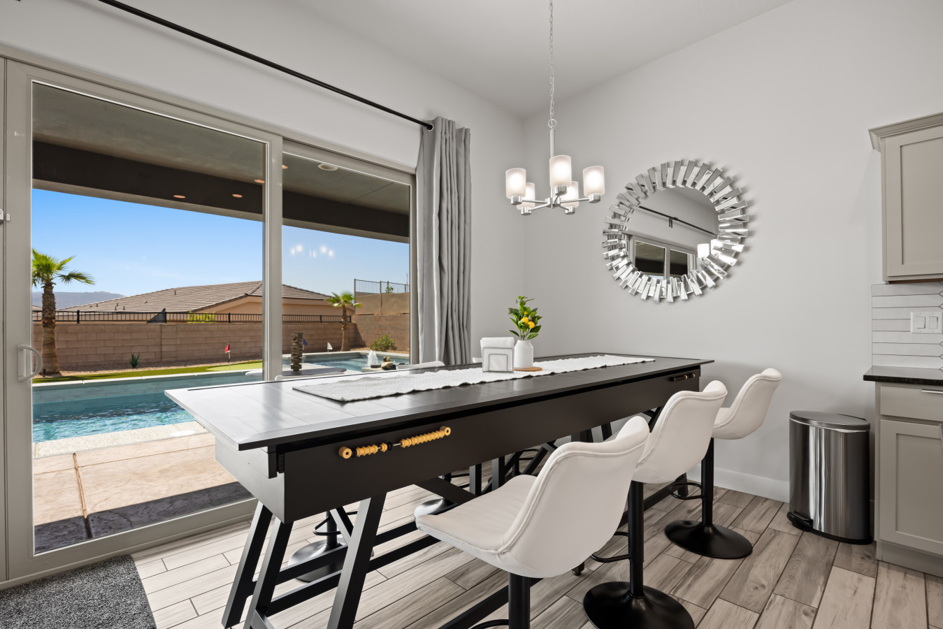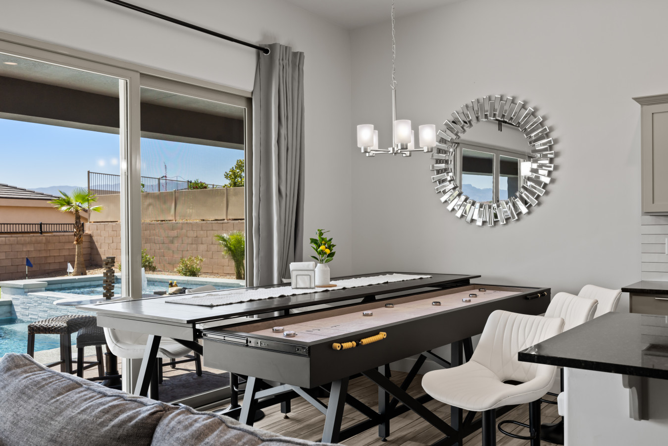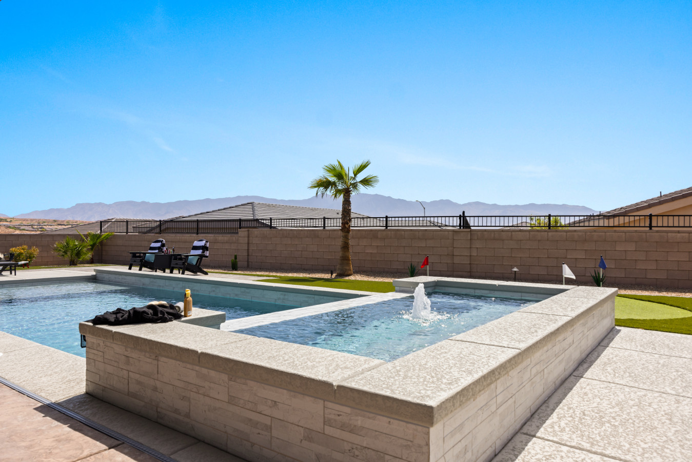 +1 (509) 881-7250Escape to this beautiful 4-bedroom home in Mesquite. Relax by the outdoor pool or unwind in the rare, 10 person hot tub with breathtaking mountain views and stunning sunrises. The spacious side yard is perfect for yard games, and the game room in the garage offers hours of fun. Bed configurations are flexible for individual sleepers. For larger groups, two partner houses next door are available. Close to world-renowned golf courses, UTV trails, gambling, and more. Book your vacation today!