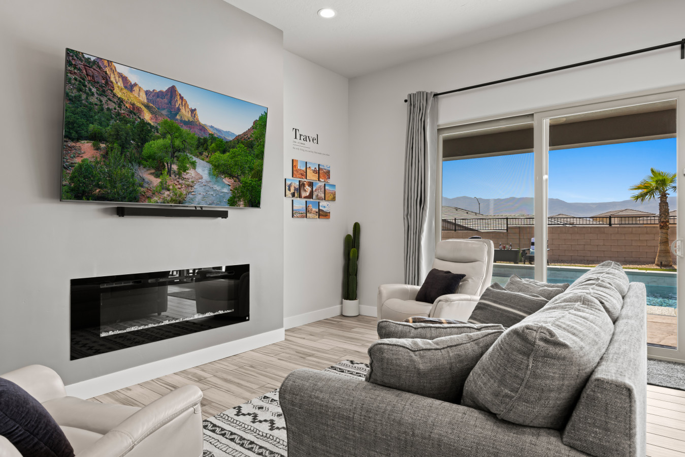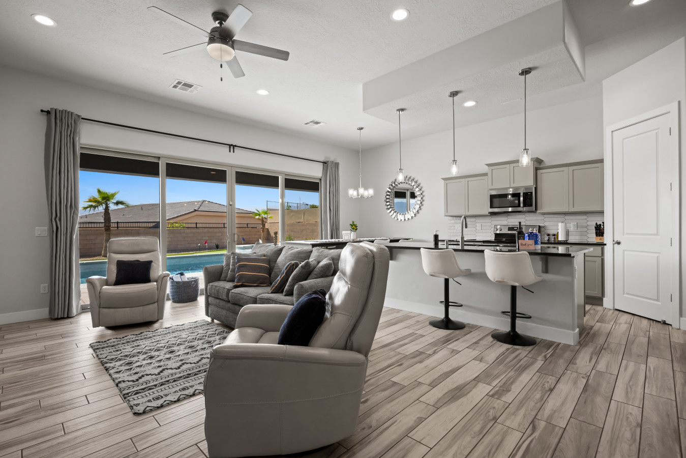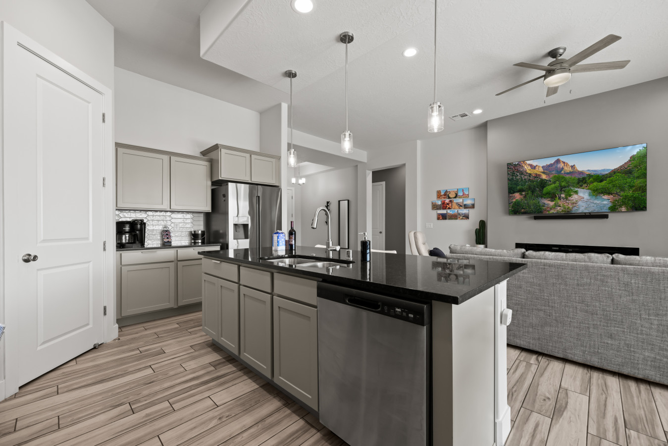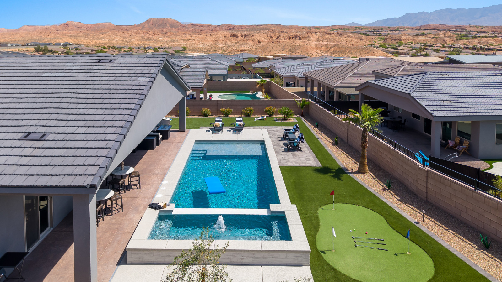 A break-away for six, come unwind and rejuvenate in our spacious retreat. Find refreshment in the lush pool following a morning of bike riding on the Virgin River bike path, a desert UTV adventure, or a round of world class golf. An airy kitchen awa...