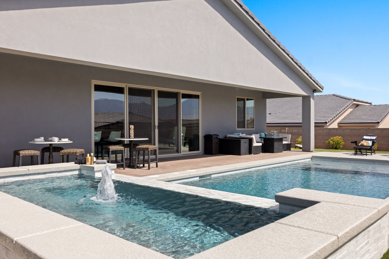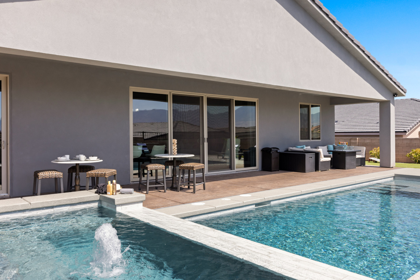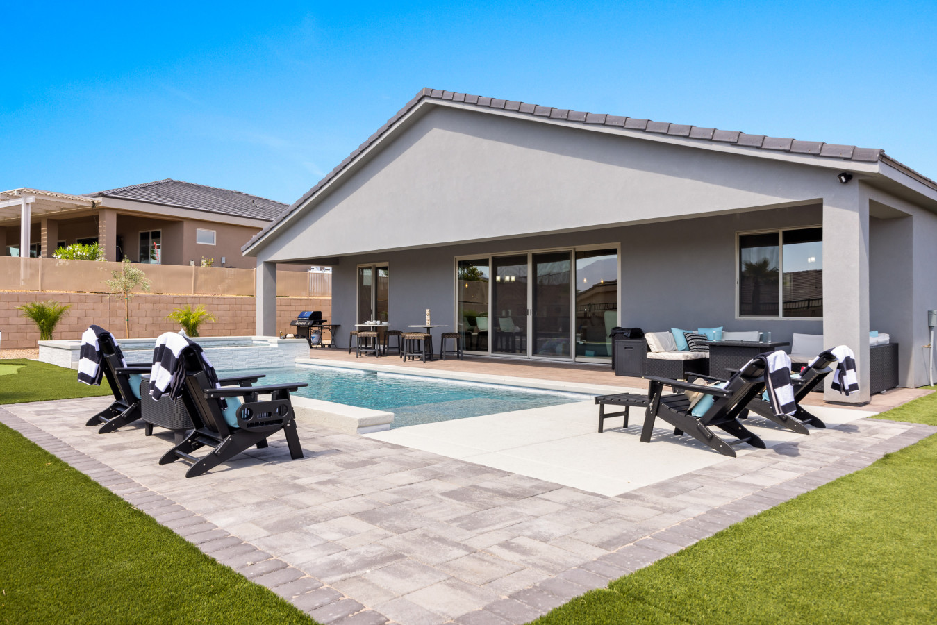 LOUNGE AREA: Lounge chairs and outdoor furniture offer additional comfort in the backyard.
