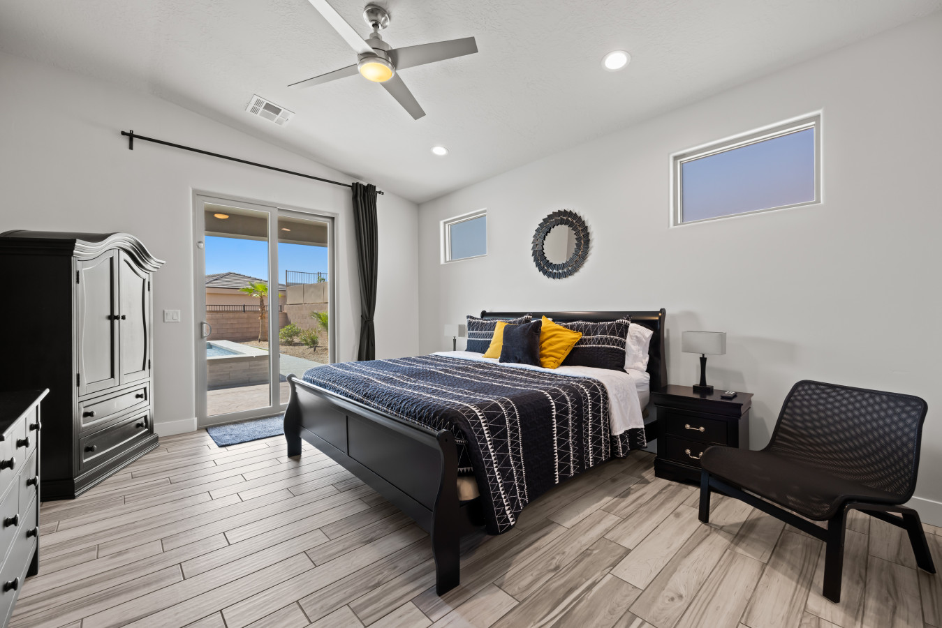 Our home and backyard/pool and hot tub is completely yours for your stay. There is a locked closet (off the master bathroom, for cleaning supplies/restocking, etc. Please let us know if you need anything restocked during your stay. There should be plenty of space to park your vehicle/s in the garage, but if not, parking in the driveway and on the street are permitted. You must move your street parked vehicle (Trailers are allowed) every 48 hours in order to abide by the HOA guidelines.