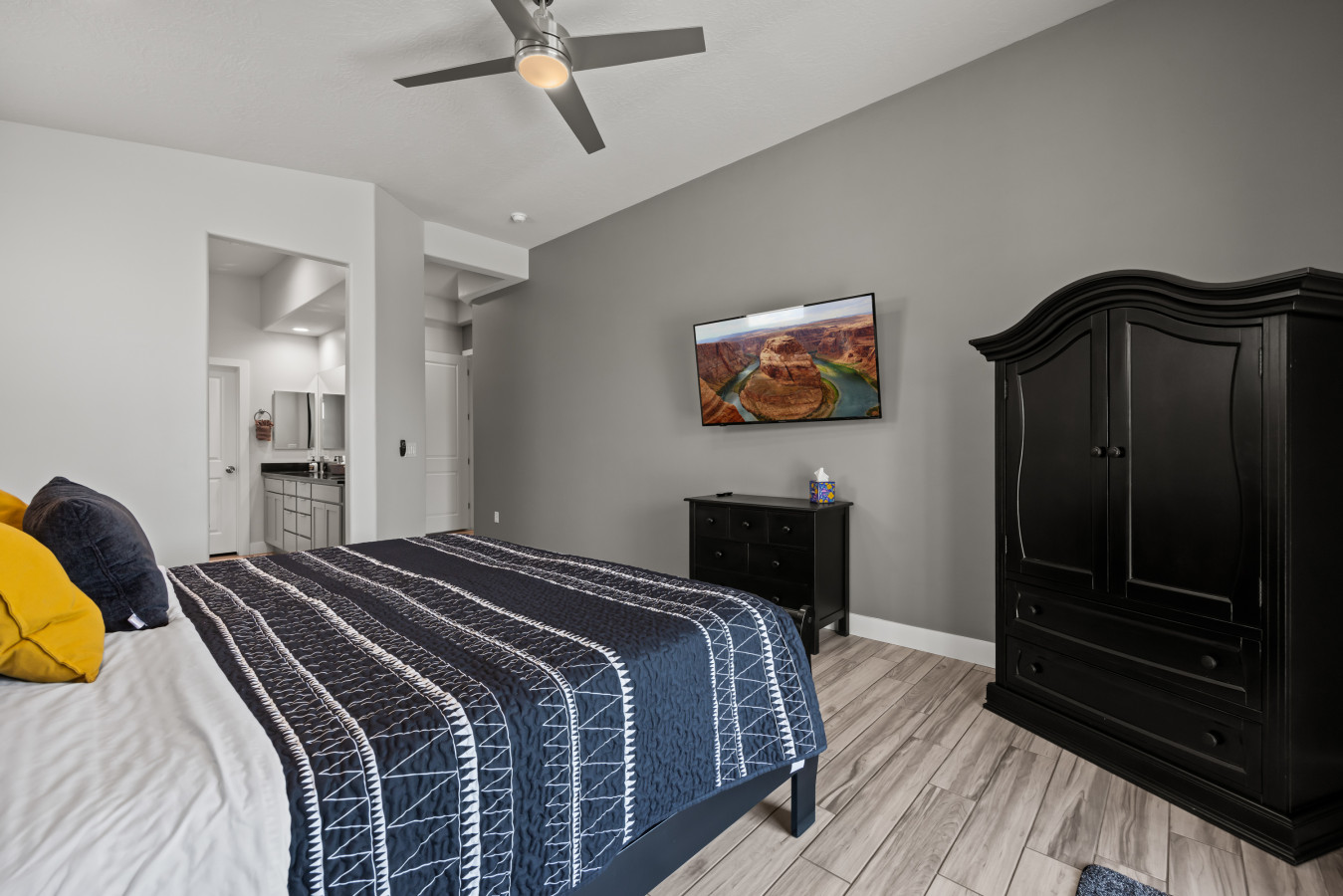 Bathrooms: Our two bathrooms provide space for everyone. One is attached to the primary bedrooms and a 2nd is between two guest bedrooms and is accessible from the main part of the house. Both bathrooms are fully stocked with luxury towels, shampoo, conditioner, body wash, lotion, and more, keeping your packing to a minimum.