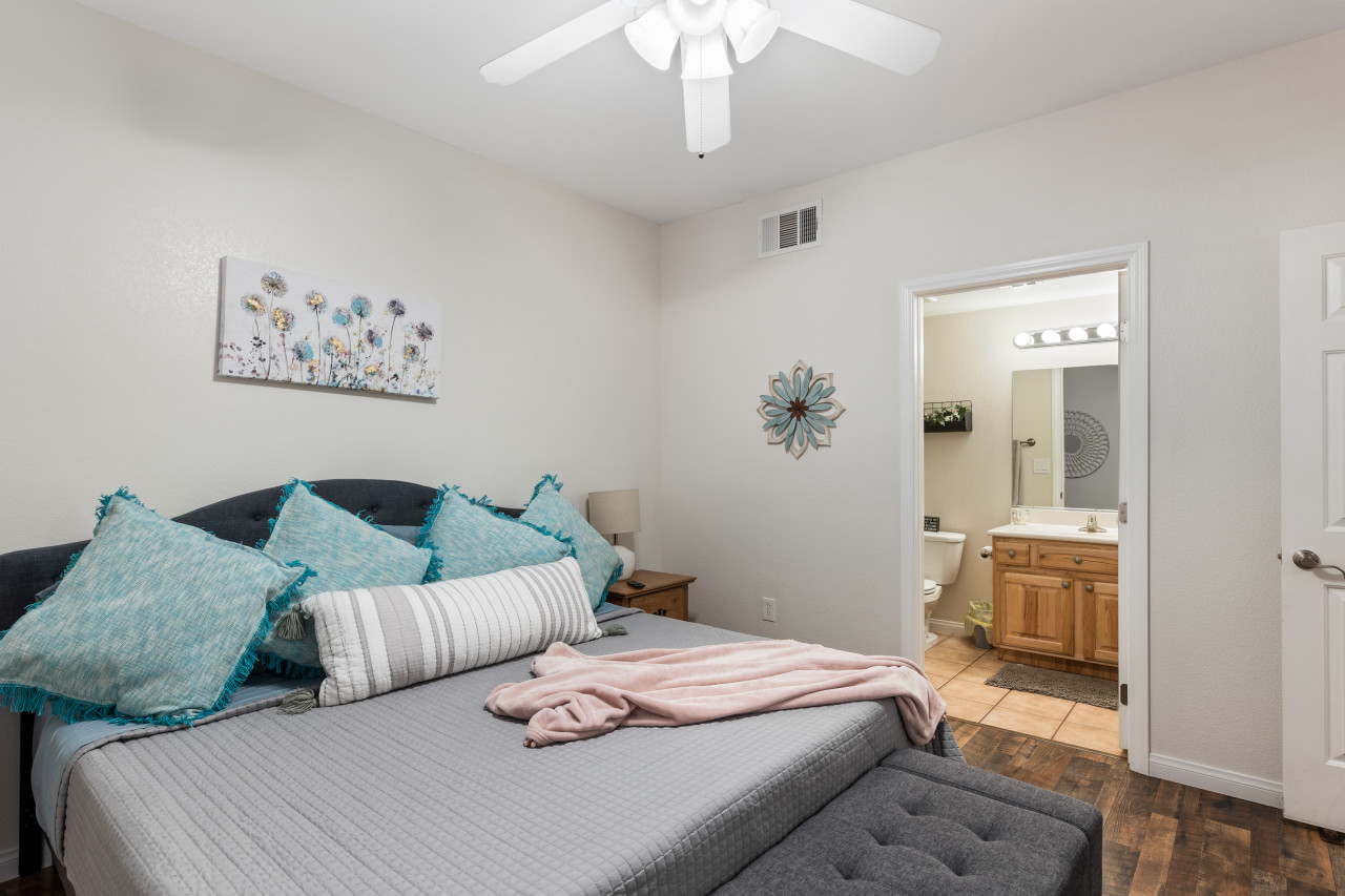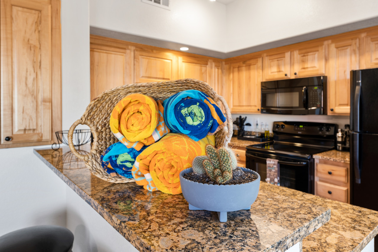 *This comfy condo accommodates 6 guests with very comfortable sleeping arrangements. The primary suite with adjoining bath gives privacy and relaxation. High quality mattresses, linens, and airy decor will pamper you as you enjoy a great night's sleep. The flexible sleeping set-up makes it versatile with a choice of king or twins in second bedroom. The second bathroom is located in the hallway and is accessible to all. No need to pack extra sundries, we've got you covered. 3 TVs, cable, A Roku TV can be found in the living, and TVs with Firesticks are provided in both bedrooms so that you can use your personal accounts to watch Hulu, Netflix, Amazon Prime, etc. An in-unit laundry and laundry supplies are provided. The kitchen is furnished with refrigerator condiments, coffee, and basic cooking spices which will make your stay a bit easier. Ready for families, our space is equipped with Pak-n-Play, changing pad, and other infant materials. Let us know if you need these items for a baby so they can be disinfected before your stay. Games, books, and puzzles are ready for evening family time.